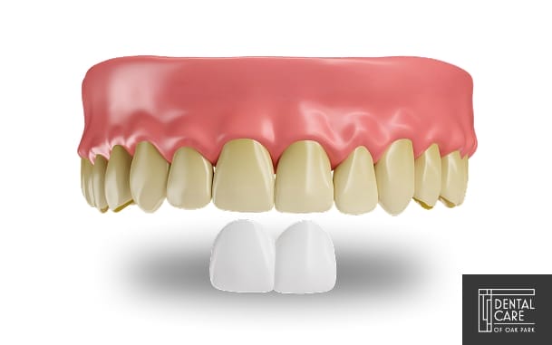 Porcelain veneers are thin coverings that fit over the front surface of your natural teeth. A dentist bonds them to the tooth to change its color, shape, size, or length.